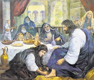 அன்பர்களே! நாம் எந்த நிலையில் இருந்தாலும் நம்மை வெறுக்கா தவர் இயேசு ஒருவரே! அவருக்கு மட்டுமே நம் இதயத்தின்மொழி தெரியும். நாம் செய்யும் காரிய ங்கள் ஊடாக இதயத்தின் ஆழb த்தை ஊடுருவிப்பார்ப்பவர் இயேசு! இயேசுவின் பாதங்களை தன் கண்ணீரால் துடைத்து, தன் கூந்தலால் துடைத்து, விலை உய ர்ந்த தைலத்தால் பூசிக்கின்றாள். யூத சமூகத்தில் பெண்களுக்குரிய நிலையை எண்ணிப்பாருங்கள் இங்கே! என்னே தைரியம் இந்த பெண்ணுக்கு, தனது இதய அன்பை இயேசுவுக்கு காட்ட, எதற்கும் அஞ்சா மல், ஒரு பெண் என்றும் பாரமல், அவள் செய்த செயலை மனக்கண் முன் கொண்டுவருகின்றேன்,,,,,,,,,,,